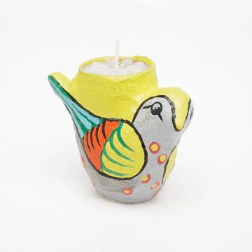 Crafted with precision and passion, this exquisite piece blends traditional artistry with contemporary design. Illuminate your space with the warm glow of this handcrafted diya, featuring a charming bird motif meticulously crafted from eco-friendly paper mache.